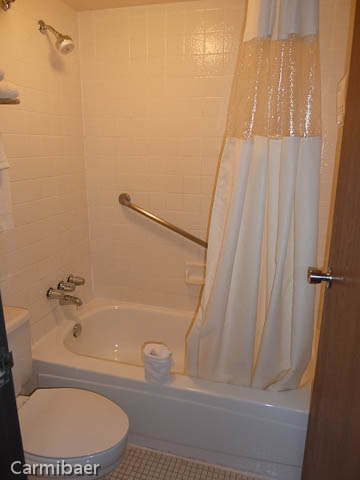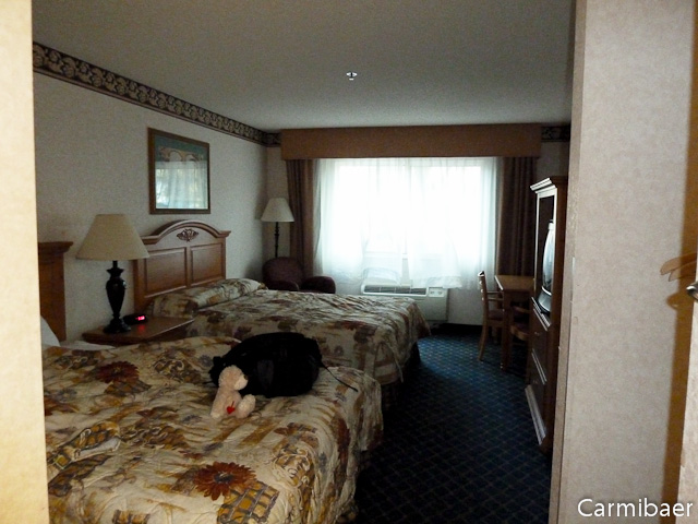 Das Hotel verfügt über zwei Ebenen in mehreren Gebäuden. Mittlerweile ist dies wohl kein Quality Inn mehr, denn es war kein grünes Schild mehr vorhanden, was die Suche etwas erschwerte. Dieses Motel ist genau hinter dem Wendy und die Einfahrt ist direkt neben dem Imax Kino. Kostenloses Wifi war leider nicht vorhanden. Das Waschbecken war ausserhalb des Bades. Eine Eismaschine gab es auch pro Gebäude. Ansonsten war das Zimmer sehr schön und das kontinentale Breakfast wurde im Restaurant eingenommen. Dort gab es ein paar süsste Teilchen und Brötchen mit Butter und Marmelade. O-Saft und Apfelsaft sowie Tee und Kaffee waren inklusive. Wenn man Eier und Speck wollte, musste man dafür dann noch etwas extra zahlen. Aufgefüllt wurde auch ständig und der Kaffee wurde serviert.