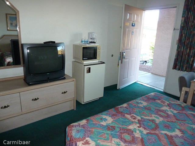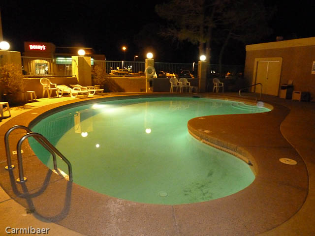 Eoin typisch eingerichtetes Motel 6 direkt an der Hauptstrasse. Der Aussenpool ist direkt neben der Rezeption. Es gibt dort WLan, allerdings nicht in allen Zimmern. Wenn man Glück hat und über der Lobby ein Zimmer hat ist der Empfang ziemlich konstant. Das Motel verfügt über innen liegende Gänge und hat insgesamt drei Etagen. Es gibt einen Aufzug und in zwei Etagen gibt es eine kleine Verpflegungsstation mit Süssigkeitenautomaten, Getränkeautomaten und Eiswürfelbereiter. Die Zimmer sind im typischen Motel 6 Stil eingerichtet. Das Bad ist zweckmässig eingerichtet. Manche Zimmer verfügen über eine Verbindungstür. In diesem Motel waren wir jetzt schon mehrere Male. Allerdings ist es mittlerweile schon ein wenig abgewohnt und doch mit gut 70-80 $ pro Nacht nicht gerade mehr günstig. Zählt aber in Page zu einem der günstigeren Motels. Morgens gibt es in der Lobby kostenlosen Kaffee.