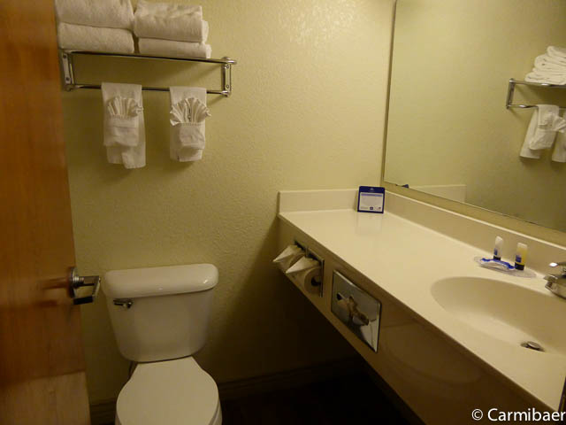 Das Motel liegt direkt an der Interstate, allerdings hört man nicht wirklich etwas davon, obwohl wir das Zimmer schon auf der Seite zur Interstate hatten. Allerdings haben wir unten unser Zimmer gehabt und da kam der Lärm nicht ganz zu uns. Wir haben angeblich ein Upgrade bekommen, was ich so jetzt nicht sagen kann. Allerdings wäre sonst unser Zimmer in dem mehrstöckigen Bereich gewesen. Die Zimmer sind recht geräumig und die Betten sind sehr bequem. Die Korridore sind doch ein wenig renovierungsbedürftig.