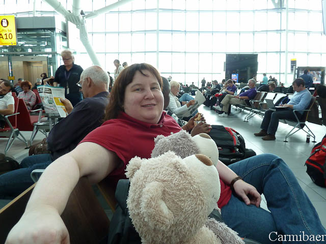 Nur mit dem Boarden ließen sie sich Zeit. Um 12.00 h hat sich der Flieger dann endlich vom Gate wegbewegt. Na ja egal, wir haben eh genügend Zeit in London. Aber wider erwarten kamen wir sogar pünktlich um 12.05 h in London an. Der Anschlussflug nach Phoenix geht um 14.20 h. Nur war das Gate noch lange nicht auf der Anzeigetafel angeschlagen und wir mussten uns die Zeit vertreiben. Aber das ist uns ja echt gelungen. Die Sitze waren auch sehr bequem, was will man da mehr. Und es ist sogar an den Anzeigetafeln angeschlagen, wielange man von einem Bereich in den nächsten benötigt. Allerdings kann ich nicht verstehen, warum dann das Abfluggate so spät erst angezeigt wird.