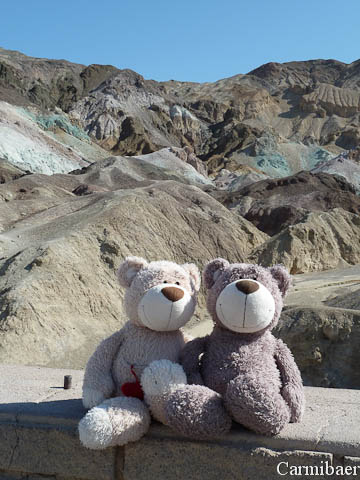 Um 7.15 h hat der Wecker geklingelt. Wir wollten morgens eigentlich vorm wegfahren zu Badwater und dem Artist Drive. Allerdings ist der Himmel so wolkenverhangen, dass wir uns alle nochmal rumgedreht und ein weiteres Stündchen geschlafen haben. Gegen 8.15 h sind wir leider von alleine wach geworden, denn das Motel ist eben hellhörig. Wir sind wirklich überrascht, dass wir immer noch die Balkontür offen haben und es nicht warm im Zimmer wird. Es ist merklich kühler geworden. Erst hab ich mit Carmen noch ein wenig am Reisebericht geschrieben, sind gemütlich duschen gegangen, haben alle Sachen im Auto verstaut und sind gegen 9.30 h aufgebrochen. Die letzte längere Fahrstrecke steht an. Heute geht es nach Las Vegas, was ja bedeutet, dass unser Urlaub bald zu Ende geht. Ich könnte doch glatt noch ein Weilchen durch den Südwesten kurven. Das ist hier alles so toll und so entspannend. Keiner hetzt einen und die Landschaft ist einfach großartig. Als erstes sind wir zum Visitorcenter gefahren. Wir wollten doch nochmal die Lage des Wetters am Bryce Canyon checken. Leider ist die Vorhersage immer noch schlecht. Es soll regnen und kalt sein. Somit ist der Traum geplatzt, dass ich meinem Willi den Bryce in Natura zeigen kann. Bryce bei Regen, da lohnen sich keine 500 Meilen dafür. Dann werden wir uns eben schöne Tage in Las Vegas machen. Dann ging es aber endlich los.
