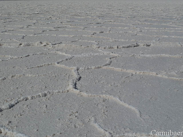 Dank Johannes vom Discover America Forum haben wir nicht am offiziellen Punkt gehalten, sondern sind ein paar Kurven weiter gefahren. Da war der Weg nicht zu weit, um ein paar schöne Bilder zu machen. Leider waren die Salzkrusten nicht so weiß. Das wird wohl am Regen von gestern oder heute Nacht gelegen haben. Auch war der umliegende Boden sehr weich und matschig, so dass die frisch geputzten Schuhe wieder dreckig waren.