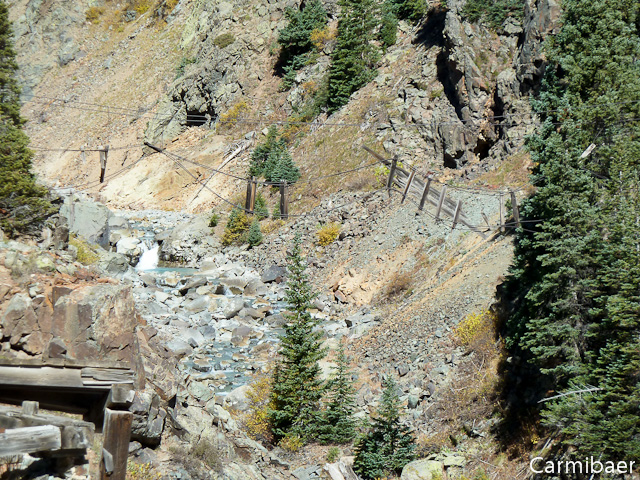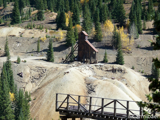 Bevor wir nach Silverton kommen passieren wir direkt an der Strasse noch die Yankee Girl Mine und eine alte halbe Eisenbahnbrücke (The Treasury Tunnel). Da sind wir gleichmal rechts rausgefahren zum Yankee Girl Mine Housing und haben ein paar Bilder gemacht. Sieht wirklich schön aus.