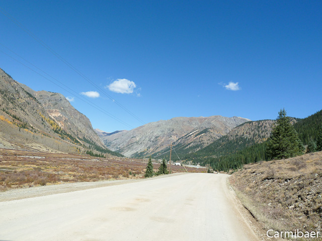 Um 13.40 h kommen wir dann in Silverton an. Dort fahren wir nur durch die Hauptstrasse und verlassen den Ort wieder in Richtung Animas Forks. Die Dirtroad bis zur letzten Ghosttown und Mine ist 10 Meilen lang. Die ersten 6 Meilen sind einfach zu fahren. Es kommen uns sogar ein paar LKW's entgegen. Diese fahren doch recht zügig.