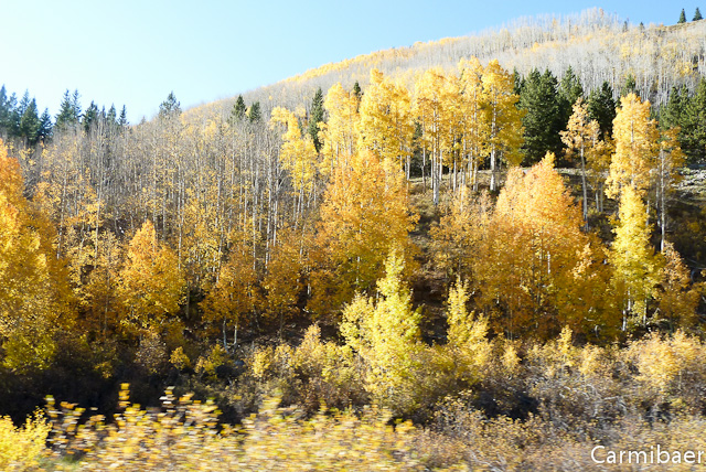 Um 9.30 h ging es dann los. Erst nochmal in Richtung Black Canyon of the Gunnison N.P. Dort sind wir dann zum Fluss runter gefahren. Die Aussicht war echt toll und die vielen bunten Blätter hatten es in sich. Unten angekommen haben wir wieder das Mutter Deer mit dem Jungen gesehen. Es war einfach zu putzig.