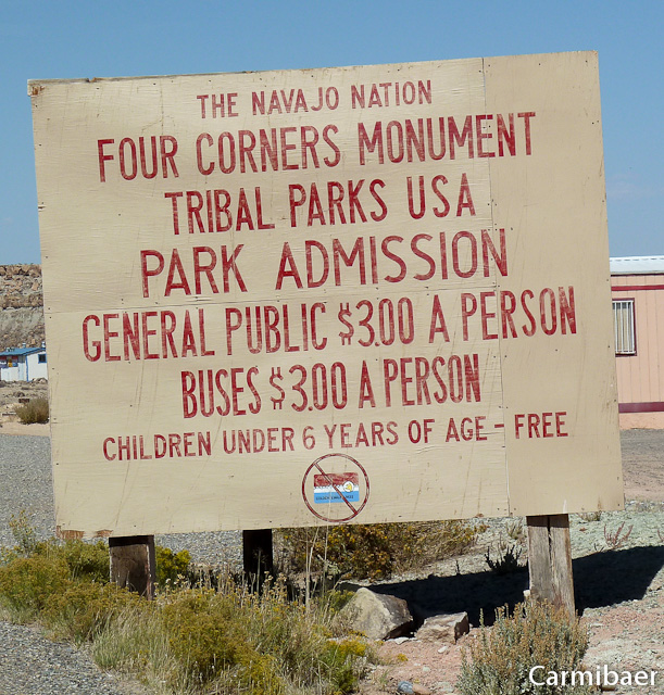 Da haben wir dann pro Person 3 $ bezahlt, damit wir uns mal in den Kreis stellen dürfen, wo alle vier Staaten zusammen laufen. Die Indianer lassen es sich eben teuer bezahlen, wenn man auf ihr Land möchte. Dort gibt es rundherum Verkaufsstände, aber die haben uns mal überhaupt nicht interessiert. Es waren auch nicht alle besetzt, aber ich denke, es ist auch nicht mehr Hochsaison.