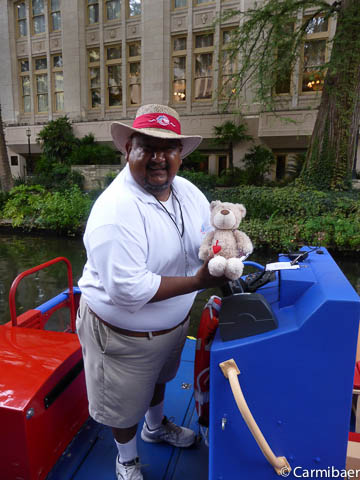 Allerdings sind sie dann auf den Riverwalk abgebogen und haben sich erstmal eine kleine Bootstour gegönnt. Da hatten sie echt Glück gehabt, denn der Kapitän war echt ein lustiger Kautz. Auch hatte das Bärchen Glück, dass es ein Bild mit ihm zusammen ergattert hat.