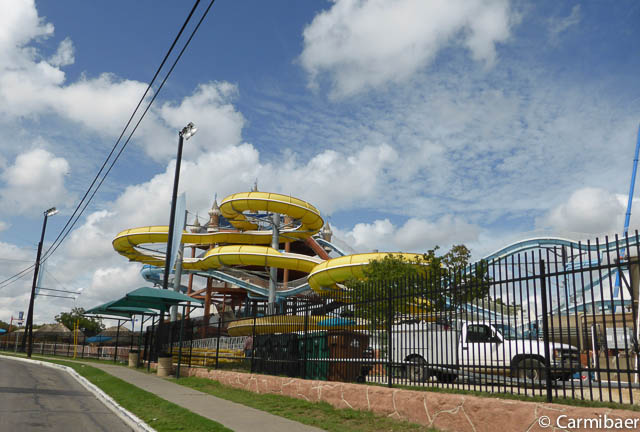 Hier die Schlitterbahn, die im Umkreis von vielen Meilen schon angepriesen wird. Ein Wasserpark mit vielen Rutschen.