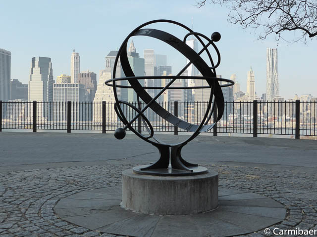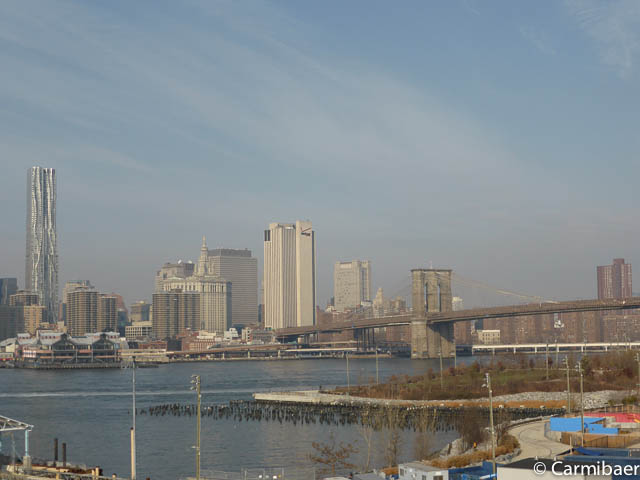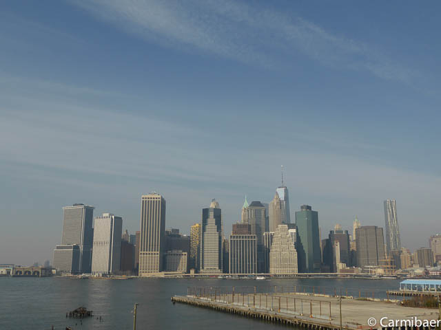 Als erstes geht es Richtung Blooklyn Heights, von wo wir einen super schönen Blick auf die Skyline von Manhattan haben. An zwei Stellen sind Bronzeplatten in den Boden gelassen, wo man Skyline zu unterschiedlichen Jahren sehen kann. Dies ist sehr interessant.
