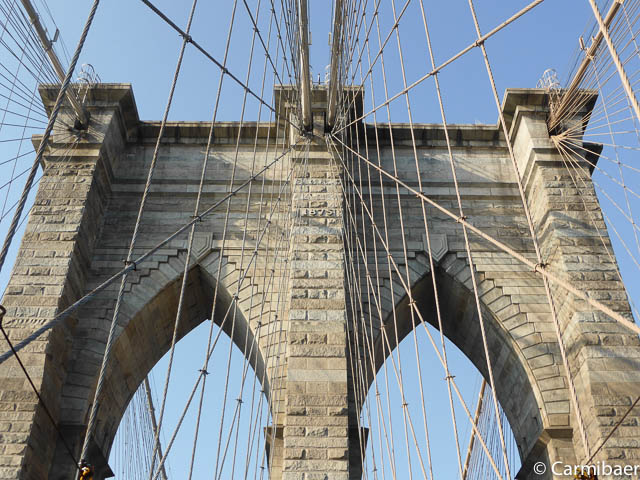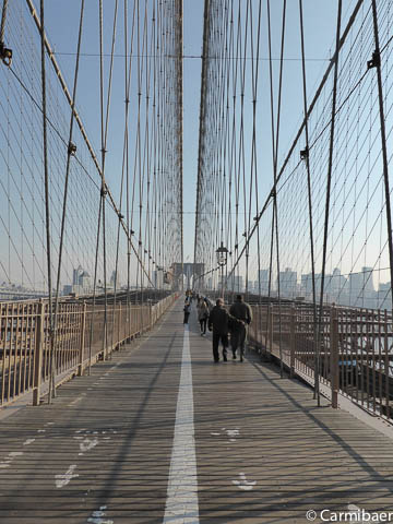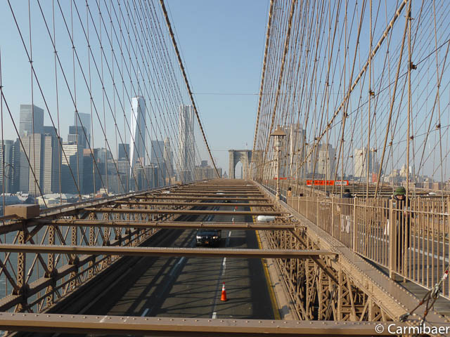 Weiter geht es zur Brooklyn Bridge, wo wir gegen 12.50 h ankommen und ganz gemütlich drüber laufen.