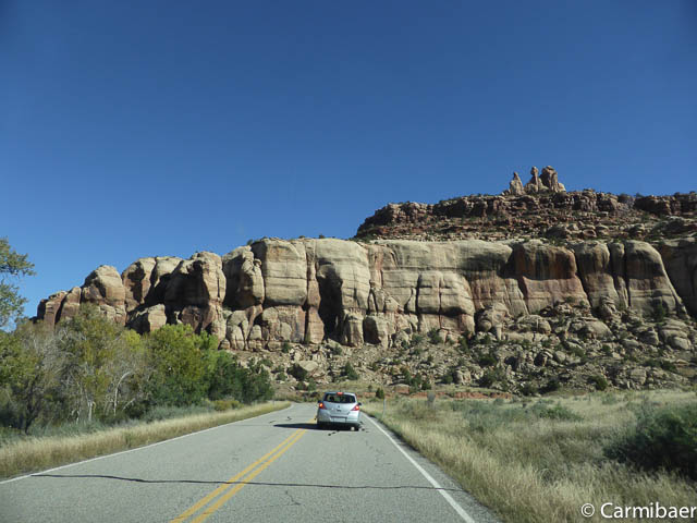 Nach einer guten Viertelstunde brechen wir auf. Noch ein kurzer Stop am Visitorcenter, mittlerweile ist es schon 12.45 h und dann geht es den langen Weg bis zum Highway 191 zurück. Leider hatten wir nicht viel Zeit hier, aber das was wir zu Gesicht bekommen haben hat uns gefallen. Irgendwie sind wir doch ziemlich müde und geschafft, aber Carmen hält sich doch tapfer am Steuer, auch wenn wir anderen ein Nickerchen machen. Kurz vorm Highway machen wir nochmal eine kurze Pause und holen kühle Getränke aus dem Kofferraum und ein wenig was zum Naschen muss auch her.