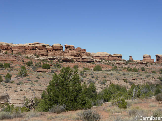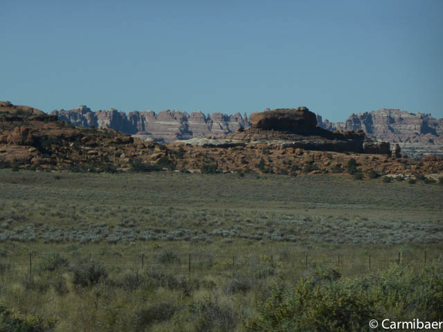 Nach einer kurzen Pause geht es weiter zum Visitorcenter im Needles District, welches wir gegen 11.45 h erreichen. Die Fahrt in den Needles District zieht sich schon ganz schön, aber die Landschaft ist echt schön. Und bis wir zum Parkschild kommen, wo auch wieder ein kurzer Fotostop eingelegt wird haben wir schon jede Menge Bilder von der schönen Landschaft geknipst.