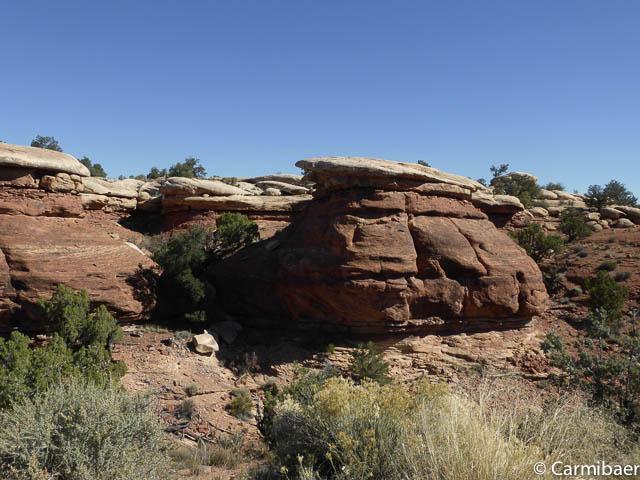 Dann geht es ein Stück zurück in Richtung Elephant Hill und zum Parkplatz, wo die großen Wanderungen losgehen und wo der Jeeptrail losgeht. Die Strecke ist nicht mehr asphaltiert, aber das macht uns ja mal überhaupt nix aus. Nur ist es an manchen Stellen ziemlich unübersichtlich und eng, aber wir haben Glück und uns kommen nur wenige Autos entgegen und immer dort, wo man sie vorher schon sieht.