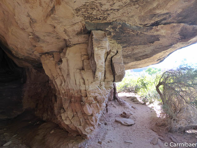 Langsam machen wir uns wieder auf in Richtung Visitorcenter. Kurz vorher biegen wir noch rechts ab, um zur Cave Spring zu gelangen. Hier führt ein kleiner Trail zu den Felshöhlen, den wir zum grössten Teil auch laufen.