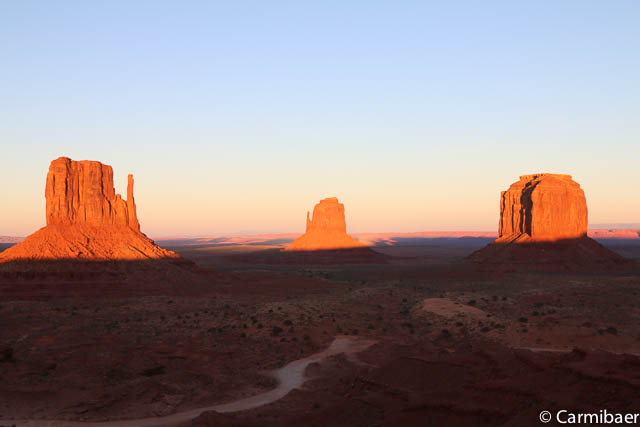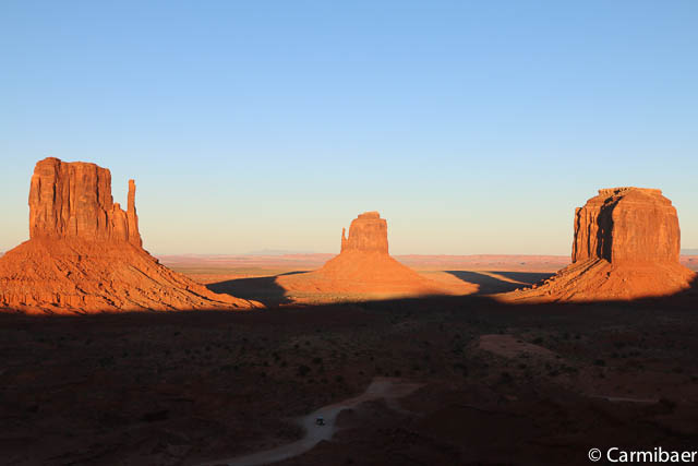 Die Fahrt geht weiter und ich fiebere schon dem Monument Valley entgegen. Hoffentlich kommt es bald ins Sicht. Aber irgendwie hab ich auch ein wenig Bammel, denn hier bin ich ja beim letzten Besuch fast verschwunden und runtergefallen, aber glücklicherweise war der Wind dann doch gnädig mit mir und ich bin kurz vor der Abbruchkante zum liegen gekommen und Carmen konnte mich retten.