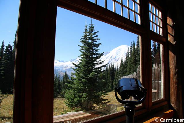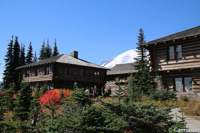 Wir setzen unsere Fahrt schnell weiter fort und halten dann beim Longmire Museum erneut an. Dort haben wir mehr Glück mit einem Parkplatz. Hier ist es auch schön schattig, denn mittlerweile haben wir schon 25 Grad und es ist doch recht warm hier.