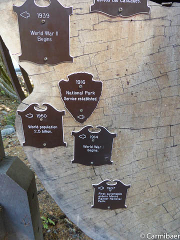 Der Baumstamm ist auch klasse. Dort sind an den vielen tausend Jahresringen immer wieder Schilder angebracht, wann es wo welchen Nationalpark oder andere Ereignise in der USA gegeben hat.
