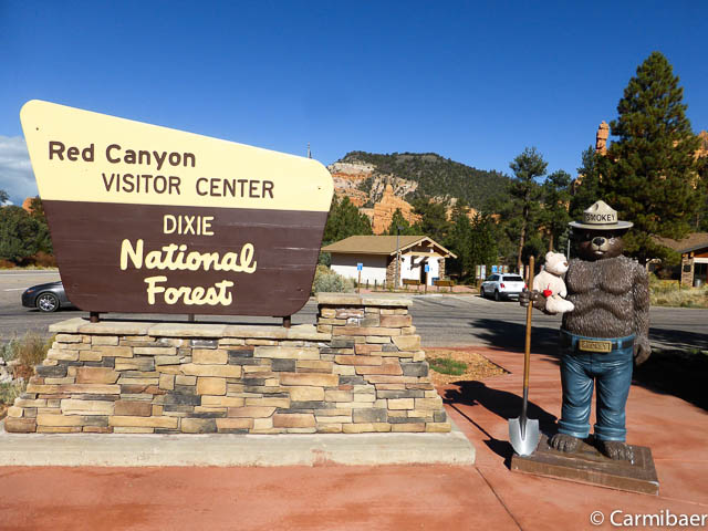Am Red Rock Canyon Visitorcenter halten wir noch einmal an. Hier begrüßt uns Smokey. Da machen wir doch glatt ein Bild zusammen.