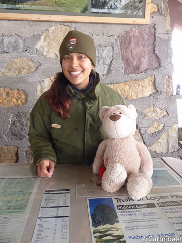 Als erstes geht's ins Apgar Visitorcenter. Hier bekomme ich mein erstes Rangerbild. Die Dame ist echt nett.