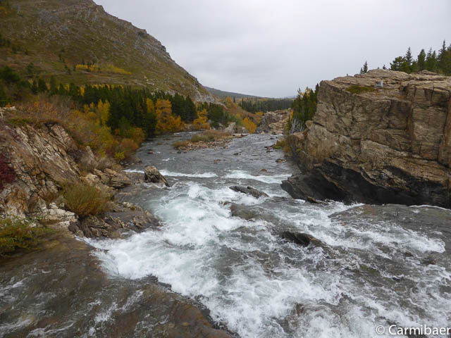 Auf dem Parkplatz haben wir ein paar Würstchen und Käsewürfel gegessen bevor wir um 12:40 h Richtung Many Glacier aufbrechen.