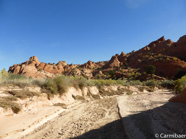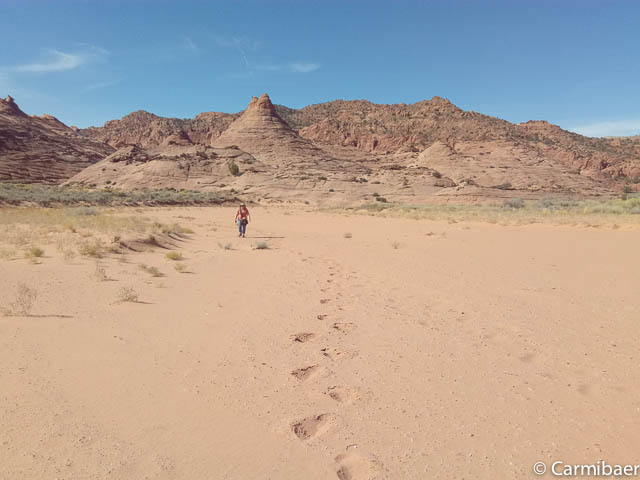 Um 9:45 h sind wir am Buksin Gulch Trailhead. Es stehen noch vier weitere Autos hier. Um 9:50 h laufen wir los. Die Wanderung verläuft meist im Flussbett, allerdings kann man auch Abkürzungen benutzen, diese führen durch sandige Passagen. Auf dem Hinweg haben wir das auch gemacht. Es sind schon echt tolle Eindrücke die man hier bekommt.