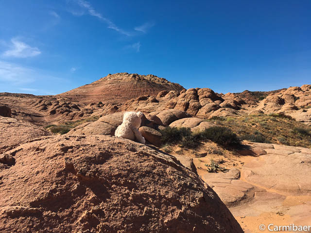 Um sieben Uhr ist wecken angesagt. Gegen 8:10 h verlassen wir das Zimmer. Schnell zum Walmart unsere Wasservorräte auffüllen und dann los zum Buksin Gulch Trailhead. Die House Rock Valley Road ist gut zu fahren.