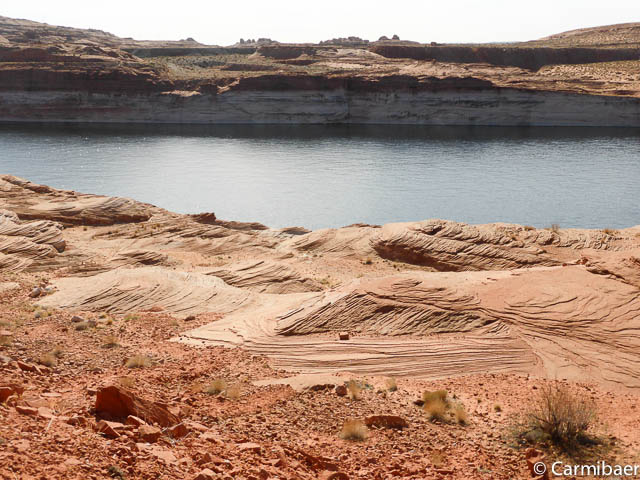 Danach geht es hinter dem Glen Canyon Dam links ab. Hier kommt man auf einer Dirtroad zu einem Parkplatz, von wo man auch einen netten Blick auf die Brücke mit Dam wie auf den See hat.