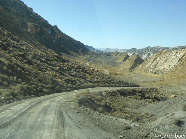 Die Straße ist mit High Clearance zu fahren und sie wäre an einigen Stellen ruppig. Wir werden sehen. Um 9:39 h erreichen wir die Cottonwood Canyon Road.
