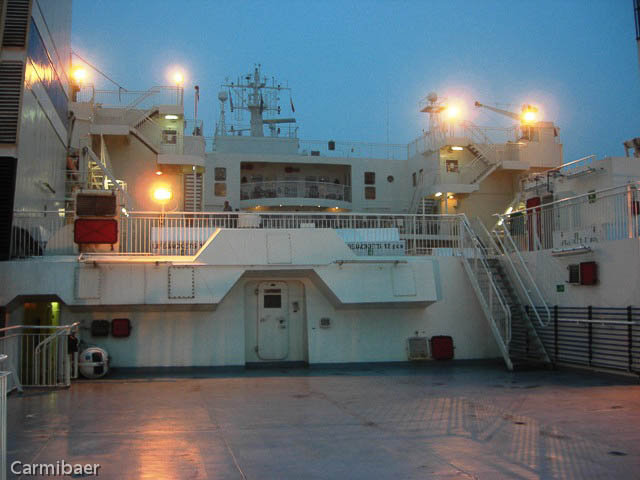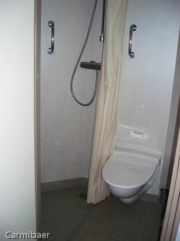 Wir Bären sind alle schön im Womo geblieben und haben darauf aufgepasst dass uns keiner etwas klaut. Die beiden anderen hatten eine Innenkabine und konnten auch einigermaßen schlafen. Um 6 h war aber die Nacht zu Ende. Man wurde automatisch durch Lautsprecheransage eine Stunde vor Anlegen der Fähre geweckt. Wir hatten aber zusätzlich noch einen Wecker gestellt. Man kann ja nie wissen. Das Bad war schon recht annehmlich, was Carmen nicht gedacht hätte.