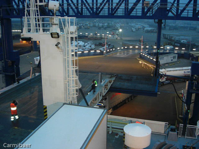 Ab 19 h soll das Einschiffen losgehen, denn um 22 h geht die Fähre nach Malmö. Na ja um 18.30 h wurde die Schranke geöffnet und wir durften als erste durch. Aber der Weg führt nur ca 100 m weiter und dann war wieder Schluss für lange Zeit. Denn Einschiffen fing erst richtig spät an, aber es ging alles zügig voran was richtig gut war. Die Zwischenzeit haben wir uns mit telefonieren und faulenzen vertrieben. Und natürlich haben wir schonmal angefangen den vollen Kühlschrank zu plündern. Denn wir wollten später nichts mehr auf der Fähre essen, sondern nur schlafen gehen. ![]()
