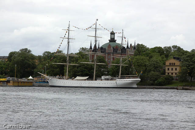 Auf dem Schiff ist eine Jugendherberge oder -hotel untergebracht. Der Blick ist sicherlich schön auf die Gamla Stan, aber ehrlich gesagt möchte ich nicht auf einem Schiff schlafen.