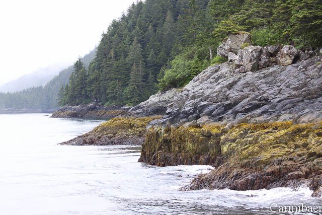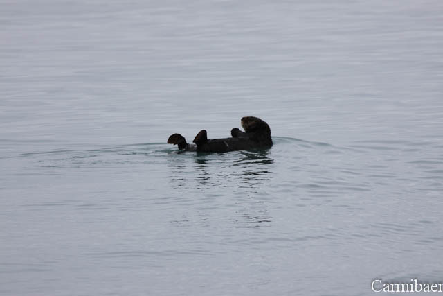 Um 7.30 h war boarden. Vor dem Schiff haben sie ihre Sitznachbarin aus dem Flieger getroffen. Das war schon lustig. Sie ist ja mit einer Reisegruppe unterwegs. Im Schiff konnte sich jeder selber einen Platz suchen. Die beiden sind gleich unten geblieben, denn unten schaukelt es weniger. Im Übrigen hat es heute morgen weniger geregnet als gestern und die halbe Nacht. Auch die See war total ruhig, was ja gut ist. Pünktlich um 8.00 h ging es auch los. Nach 10 min gab es das erste Tier zu sehen. Einen Seeotter. Er hat sich einen Spass daraus gemacht und ist schön auf dem Rücken gepaddelt.