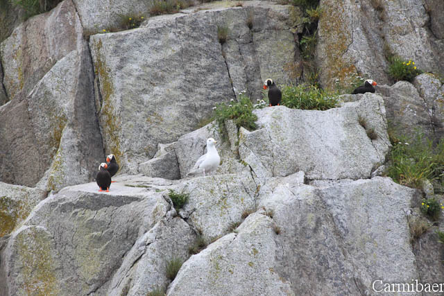 Weiter ging es und als nächstes waren Seelöwen, Kormorane und Lunde (Paffin) zu bestaunen. Eine Bergziege war zwischendurch auch zu sehen. Dazwischen hatte man immer wieder Blicke zum Land und auf die Umgebung, auch wenn das Wetter immer noch nicht toll war. Aber es war einfach herrlich auf dem Boot.
