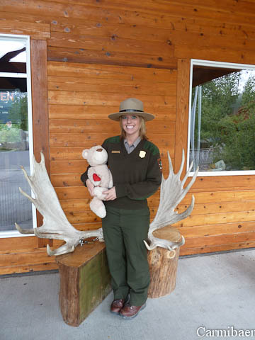 Nach über 7 Stunden kamen Knut und Carmen von der Bootstour endlich wieder zu uns. Und da heute die Sonne vom Himmel scheint, zumindest etwas, bin ich doch glatt mit ins Visitorcenter gegangen. Die Dame war wirklich sehr nett. Ich hab sogar ein Juniorranger-Abzeichen bekommen. Und das durfte ich sogar nach dem Foto behalten.