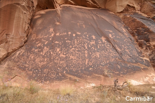 Dann ging es gegen 13 h weiter durch Mexican Hat zum Newspaper Rock, wo meine Eltern nur kurz zum Fotostopp ausgestiegen bzw. wegen mangelnder Unlust aus dem Fenster fotografiert haben.
