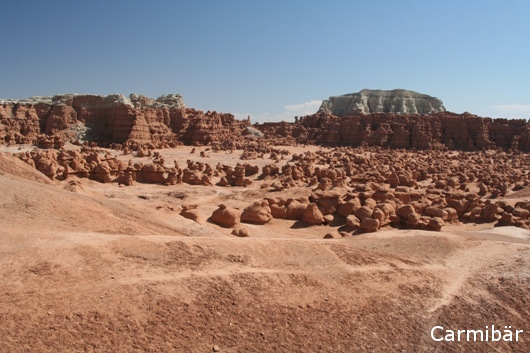 Wir sind über den Goblin Valley State Park gefahren. Es ist ein sehr kleiner aber schöner Park. Da es ein State Park ist, mussten wir Eintritt bezahlen, da er ja in unserm Annual Pass nicht enthalten ist. Es war schon recht lustig, da es nur so von Jugendlichen gewimmelt hat, die dort sauber gemacht haben. Keine Ahnung was es für Leute waren. Auch an dem Viewpoint, wo man zu den kleinen Zwergen runtersteigen konnte, waren ein paar Jugendliche mit Ihrem Aufpasser oder Erzieher zu Gange und haben dort die Picknickbänke neu angemalt. Es hat bei der Hitze ganz schön nach Farbe gestunken. Da es aber heute heiß war (zumindest für uns war es schon zu warm) und wir nicht wirklich in Wanderlaune waren sind wir dort durchgefahren und haben ein paar Bilder gemacht. Wenn es vielleicht nicht so nach Farbe gestunken hätte, wären wir doch noch ein paar Meter gelaufen, aber so sind wir lieber wieder ins Auto gestiegen und haben den Platz des Gestankes verlassen. ![]()