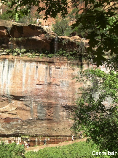 Danach sind sie direkt weiter bis zur Zion Lodge, um dort zu den Emerald Pools zu laufen. Sie sind bis zum Middle Pool gekommen. (3,2 km) und von dort dann zum Lower Pool. Der Middle Pool hatte nicht wirklich viel Wasser. Die Strecke war schon ein wenig anstrengend und glücklicherweise hat Carmen auf Knut gehört und sie sind zwar den etwas steileren, aber wirklich schöneren Weg auf dem Hinweg gelaufen.