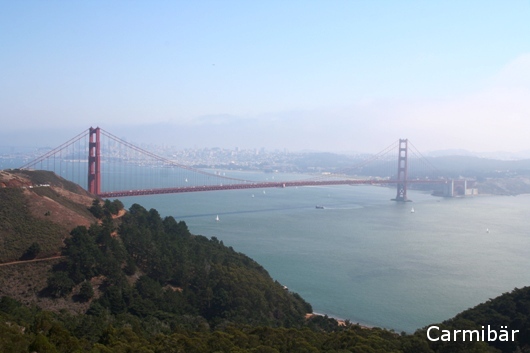 Als sie an der Golden Gate Bridge vorbei kamen haben sie kurzfristig mal die Route geändert und sind erstmal über die Brücke zu den Marin Headland Golden Gate N&A hochgefahren. Leider lag Downtown San Francisco im Dunst. Und es war auch mal wieder sehr windig.