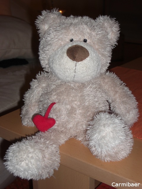 Am 11.02. sind die beiden dann abends zum Flughafen gefahren und haben Vorabend-Checkin gemacht, damit wir alle morgen früh ein wenig länger schlafen können. Das war auch richtig schön nochmal mit dem Willi so ausgiebig zu knuddeln, denn er muss ja leider zu Hause bleiben, denn ich nehme ja schon jede Menge Platz in Anspruch. Aber wir haben dieses Mal einen anderen Baeren im Gepäck mitgenommen, denn er soll uns mit dem Wetter Glück bringen. Und das ist er, unser Glücksbaer.