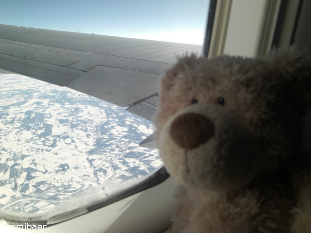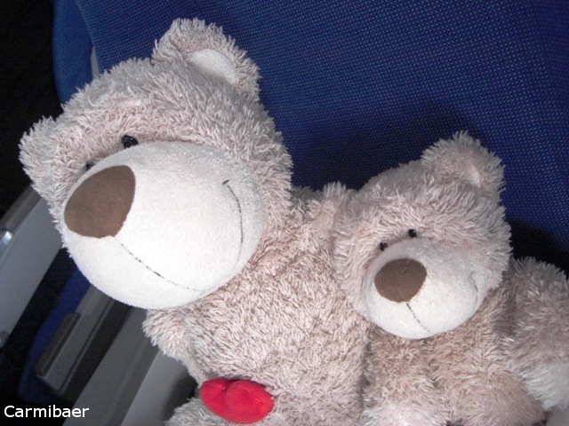 Das hieß dann erstmal Bus fahren. Allerdings kamen wir am Flieger an und durften nicht aussteigen, da noch ein Sicherheits- Checkup gemacht werden muss. Die Warterei war echt lästig, aber dann ging es endlich los. Gott sei dank war der Flieger nicht ausgebucht und somit hat Knut sich von uns weggesetzt und ich hatte mit dem Glücksbären einen eigenen Sitzplatz. Bin auch ganz oft gefragt worden wie es mir geht, denn die Stewardessen fanden uns alle so knuddelig süss. Leider ging der Flug gleich mit Verspätung los. Wir sind um 11.56 h endlich abgehoben und nun mussten wir noch 12 Std überstehen bis wir in Las Vegas landen würden.