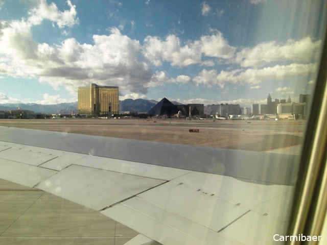 Und um 14.45 h sind wir dann in Las Vegas endlich gelandet. Die Landung war nicht so angenehm. Der Pilot hat uns auch Regen vorausgesagt, wobei ich das nicht wirklich sehen kann.