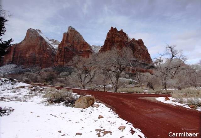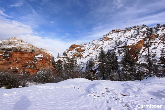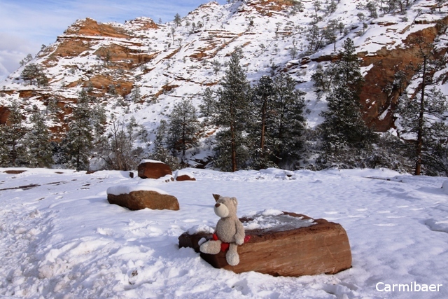 So gegen 13.30 sind wir dann im Zion angekommen und wir hatten eigentlich verhältnismäßig gutes Wetter, für dass das eigentlich Regen und Schnee vorhergesagt wurde, hatten wir Sonnenschein mit abwechselnden Wolken. Was will man mehr.