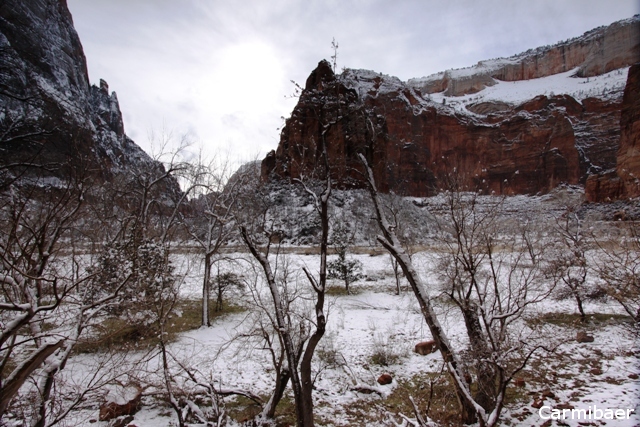 Dann sind wir weiter gefahren bis zum letzten Viewpoint dem Temple of Sinawava. Hier noch ein paar Bilder. Gewandert sind wir auch dort nicht, denn es war einfach nur nass und etwas glitschig, denn es muss wohl erst geschneit haben.