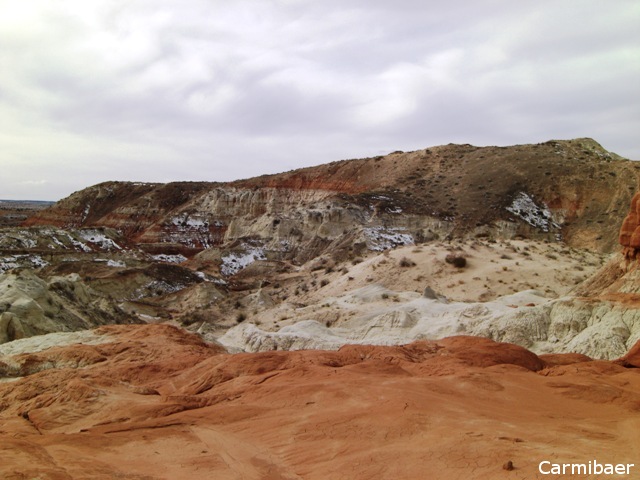 Hier kann man sogar noch ein paar Fitzelchen Schnee auf den roten Steinen entdecken. Carmen fand das faszinierend. Es waren wohl die Stellen, wo kaum Sonne hinkommt.