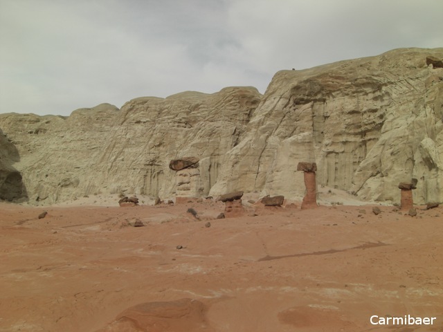 Auf halben Weg ist Knut dann eingefallen, dass er wohl seine Speicherkarten im Hotel hat liegen lassen. Dann haben wir den Rucksack erstmal durchwühlt und tatsächlich war keine der drei Karten im Rucksack. Aber zurück wollte Knut auch nicht mehr fahren, denn er dachte, dass es dann wegen dem Wetter überhaupt nicht mehr lohnt dorthin zu gehen. Glücklicherweise hat ja Carmen auch noch eine Kamera. Allerdings war da der Akku nicht mehr ganz taufrisch. Hoffentlich hält er wenigstens, damit noch ein paar Hodoos auf die Speicherkarten kommen. Ich wollte doch noch welche zu Gesicht bekommen.