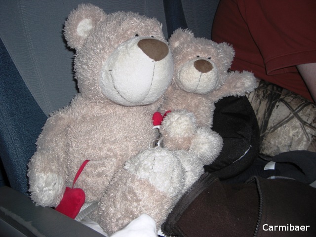 Und später sind dann Carmen und Knut noch auf den Geburtstag von Carmens Großcousin gegangen und ich habe mit den ganzen anderen Bären geknuddelt. Sie haben sich alle rießig gefreut, das der Glücksbaer und ich heil wieder zu Hause angekommen sind. Natürlich auch, dass Carmen und Knut wieder da sind.