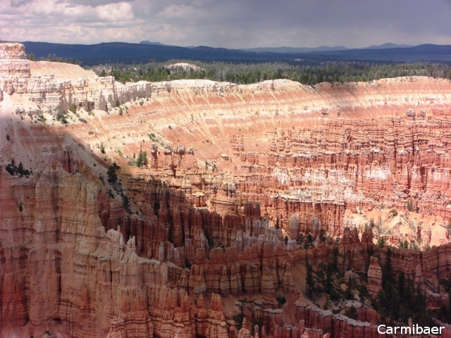 Wir sind gleich noch zum Bryce Point gefahren und von dort zum Sunset Point. Unsere beiden Mitfahrer sind dann am Rim entlang bis zum Sunrise Point gelaufen, wo wir sie abgeholt haben. Aber leider nahmen die Wolken immer mehr zu und es donnert auch schon.
