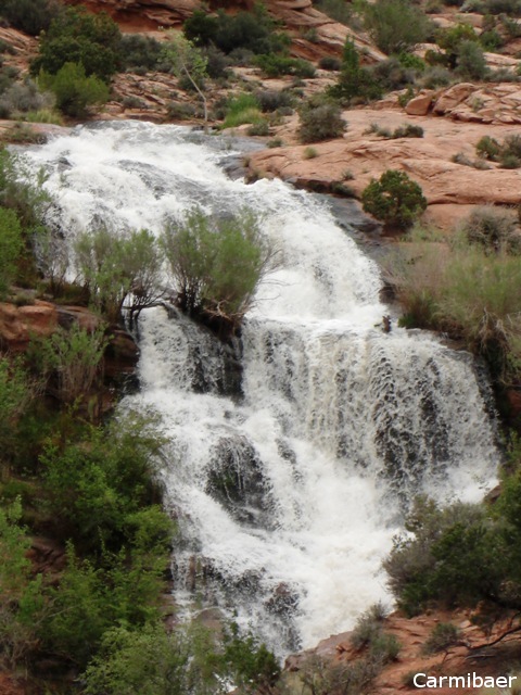 Nach ein paar schönen Momenten an den Fällen haben Knut und Carmen beschlossen noch ein Stückchen die La Sal Mountain Loop Road zu fahren. Denn das Wetter hat jetzt nicht dafür gesprochen, um im Devils Garden laufen zu gehen. Im Endeffekt sind sie den ganzen Loop gefahren, auch wenn es zwischenzeitlich immer wieder geregnet hat. Aber es war eine schöne Strecke, auch wenn manches im Nebel verschwunden ist.