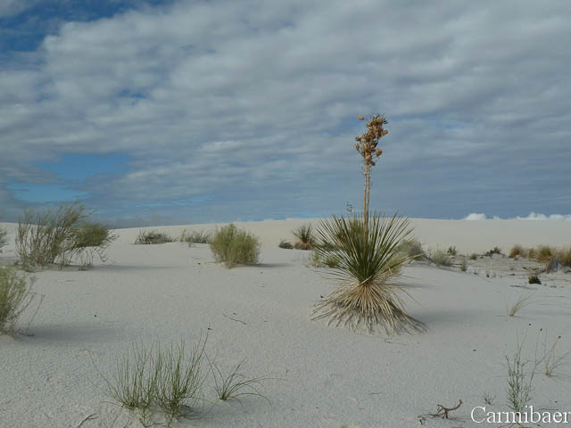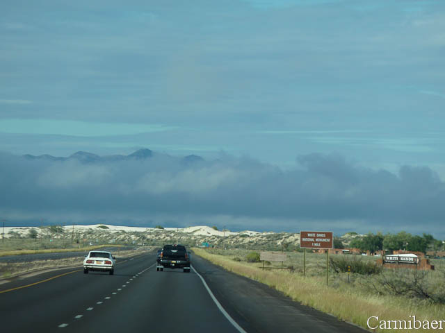 Es regnet immer noch oder schon wieder. Da wird das ja nix mit einem schönen Sonnenaufgang. Doch irgendwie konnten wir nicht schlafen und sind dann wach geblieben. Wir haben ein wenig im Forum gesurft und E-Mails geschrieben. Gegen 7.00 h sind wir langsam aufgestanden, haben geduscht und uns abfahrbereit gemacht. Um 8.20 h ging es erst mal zum Walmart um ein paar Kleinigkeiten einzukaufen. Weiter ging es dann zum White Sands N.M. Schon die Anfahrt heute morgen sah irgendwie freundlicher aus als gestern.