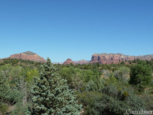 Weiter ging es, um uns den Cathedral Rock anzuschauen. Leider haben wir ihn nicht so schön vorgefunden, wie man ihn immer auf so vielen Bildern sieht. Schade, aber nicht zu ändern. Wir haben dort im nahe gelegenen Park gehalten und sind ein wenig durch die Gegend gelaufen in der Hoffnung, doch noch den richtigen Platz zu finden. Leider mussten wir fürs Parken auch Geld bezahlen und wurden nicht so richtig belohnt. Aber egal, es war ein schöner, wenn auch heißer Spaziergang, denn die Sonne hat nun unaufhörlich vom Himmel gebrannt. Wieder zurück am Auto haben wir erst mal eine kurze Rast eingelegt und ein bisschen was gegessen und getrunken.